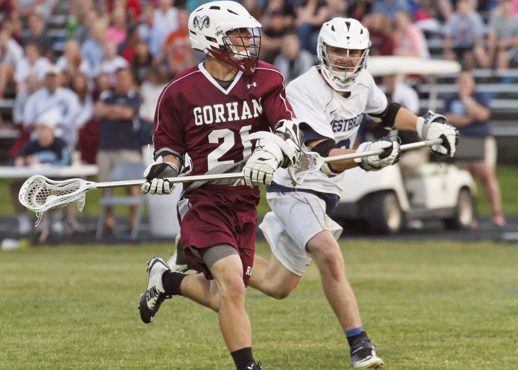 Gorham’s Abe Eaton and Cam Wright hashed a hat trick apiece in Westbrook on Wednesday night, leading the Rams to a 12-11 quarterfinal W over the Blazes. The Rams had scant time to celebrate, however, as the victory advanced them to Saturday’s semifinal against mighty South Portland. There they stumbled at last, falling 16-7 to the Riots, who moved on to Wednesday evening’s A West Final against No. 2 TA.