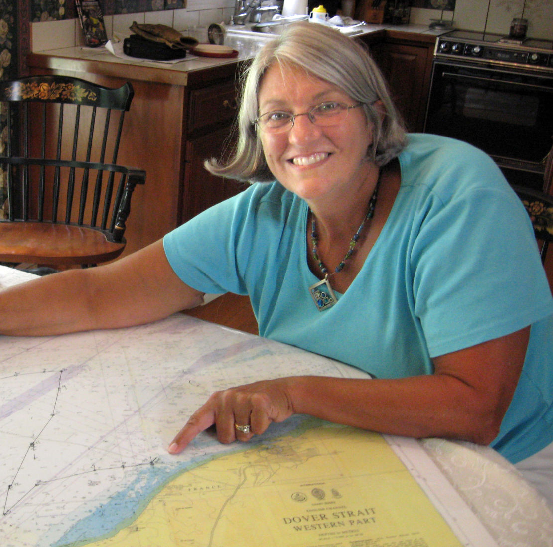 Westbrook resident Pat Gallant-Charette always carefully plans out her swim routes, as she did here for an English Channel swim. File photo