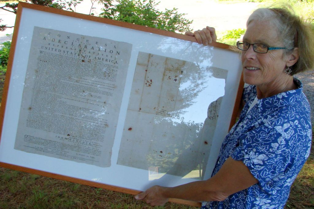 North Yarmouth’s copy of the Declaration of Independence is one of only two possessed by the state. The North Yarmouth copy is on permanent loan at the Maine State Archives, while Town Hall displays a high-resolution photo of the document, held here by Katie Murphy, president of the town’s historical society.