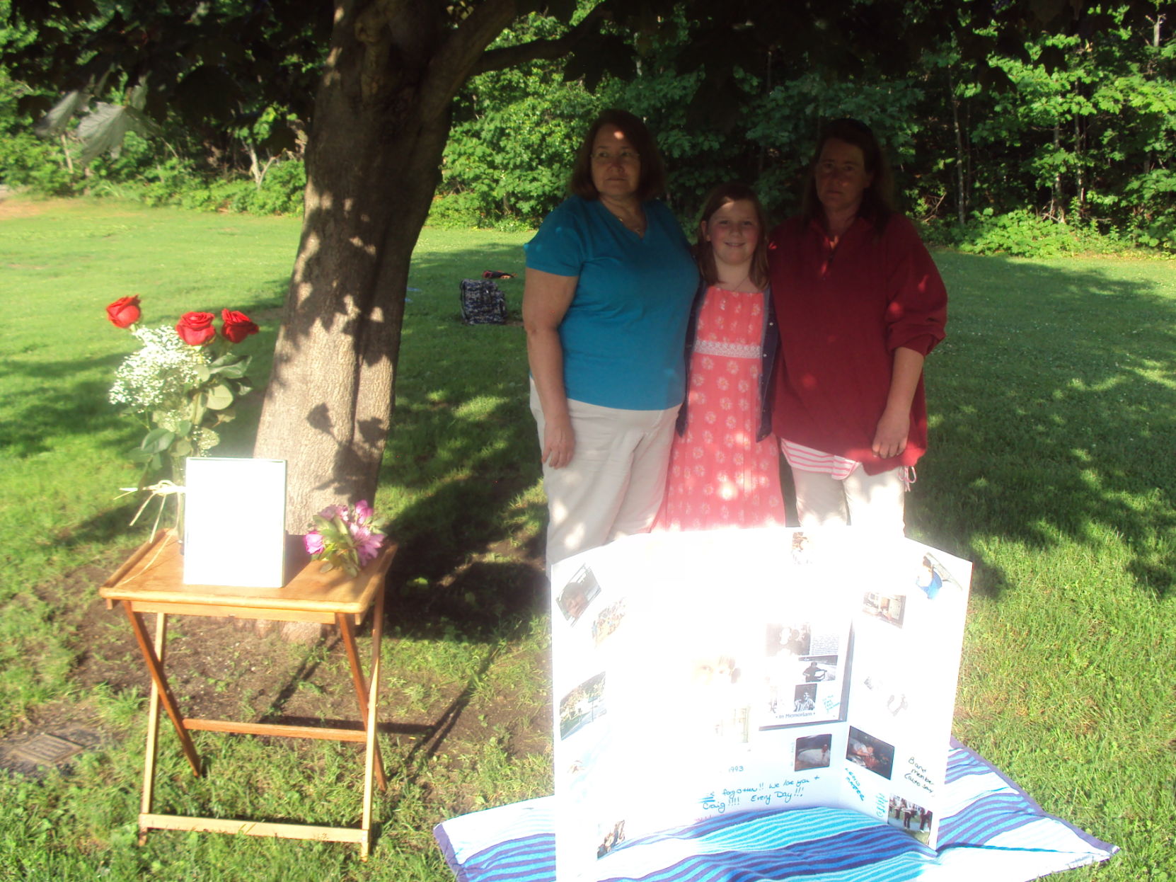 Twenty-five years after Craig Richard was killed while riding a bicycle at the age of 15, family and friends gathered on June 22 to put flowers and a collage near the maple tree planted in his memory at Freeport High School.