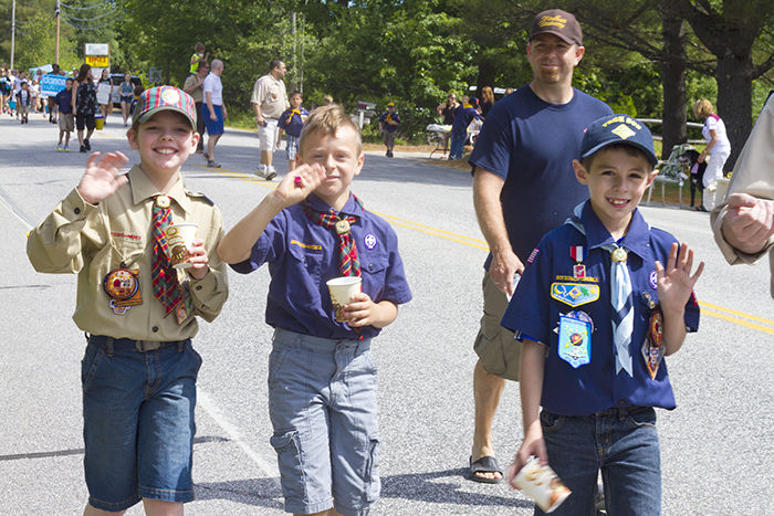 Boys from the Windham Cub Scout Pack 805 throw candy while they walk in the parade Saturday.