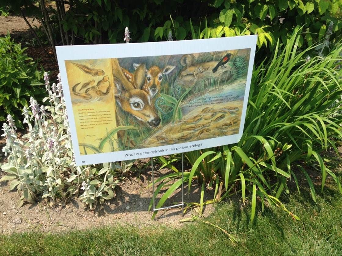 Signs will be located around the grounds of the Scarborough Public Library during the upcoming StoryWalk to help engage children with nature while they read, “The Secret Pool.”Courtesy photo