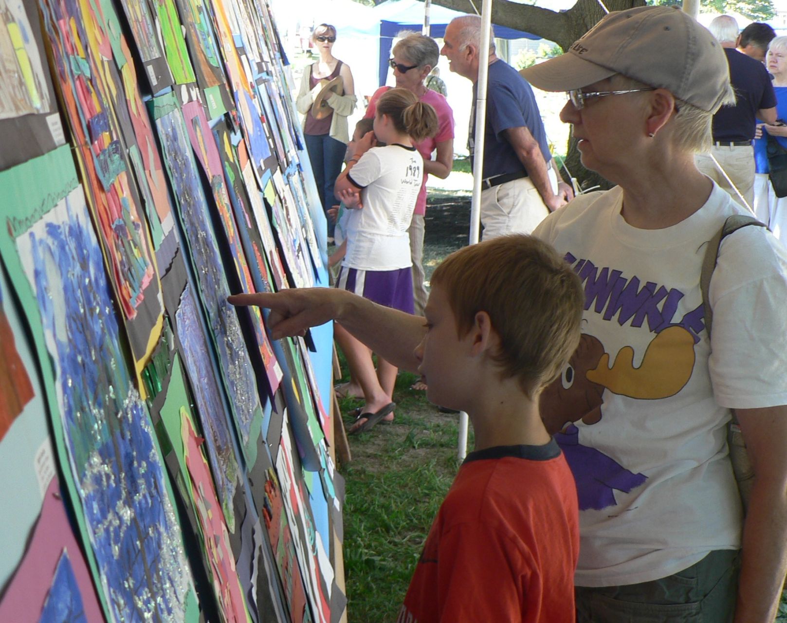Enjoying the artwork of public school students in South Portland are Seth Mishkin, 9, and his grandmother, Kay Mishkin. Seth is a student at the Greater Portland Christian School, located on outer Broadway.Staff photos by Kate Irish Collins