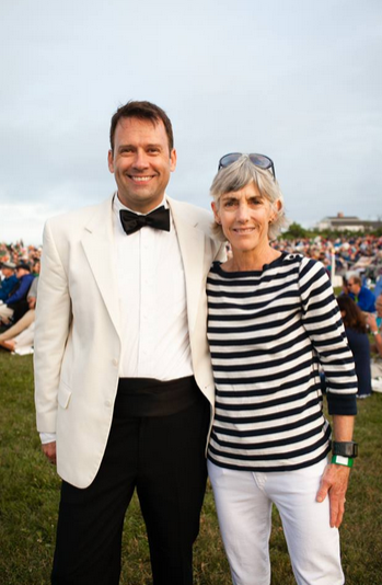 Portland Symphony Orchestra conductor Robert Moody and Olympic gold medalist Joan Benoit Samuelson, a native of Cape Elizabeth, at the 250th anniversary concert, July 25.