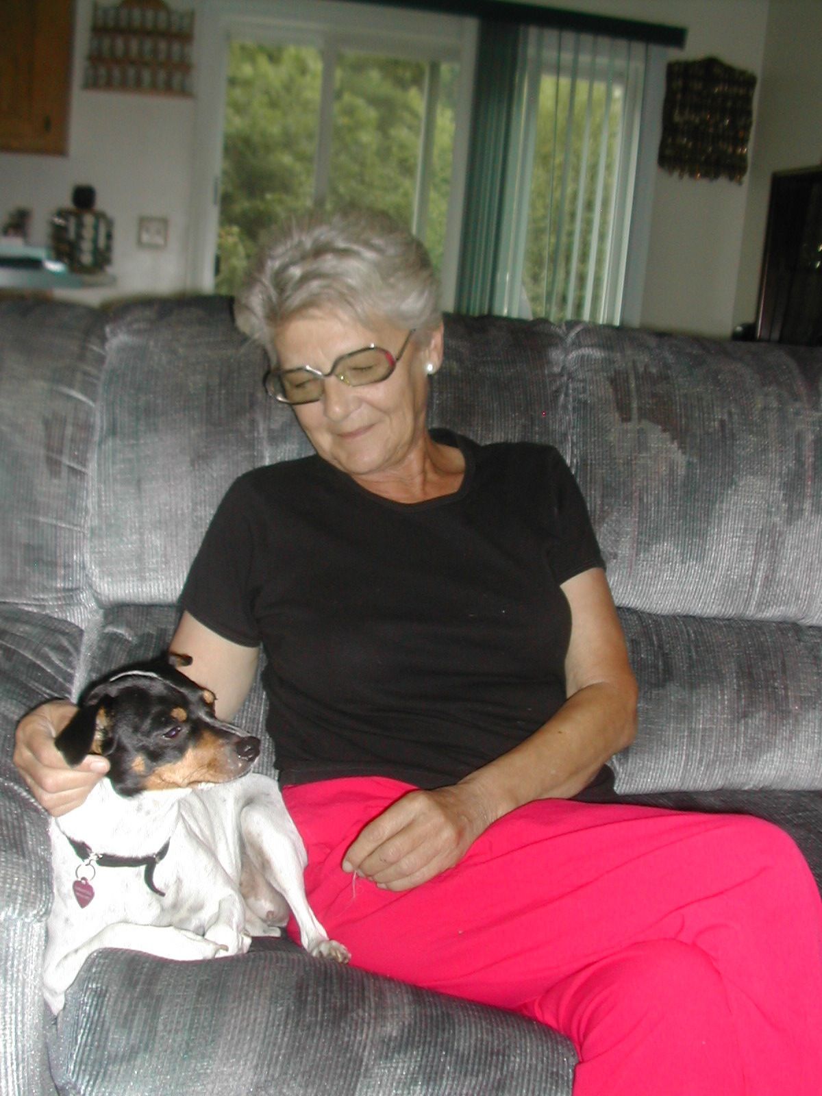 Arriving in Maine from Louisiana as a refugee from Hurricane Katrina, Susan Rappold and her rat terrier, Samantha, relax in September 2005 while staying with the Fortunato family in Buxton before Rappold moved to an apartment in Gorham. File photo