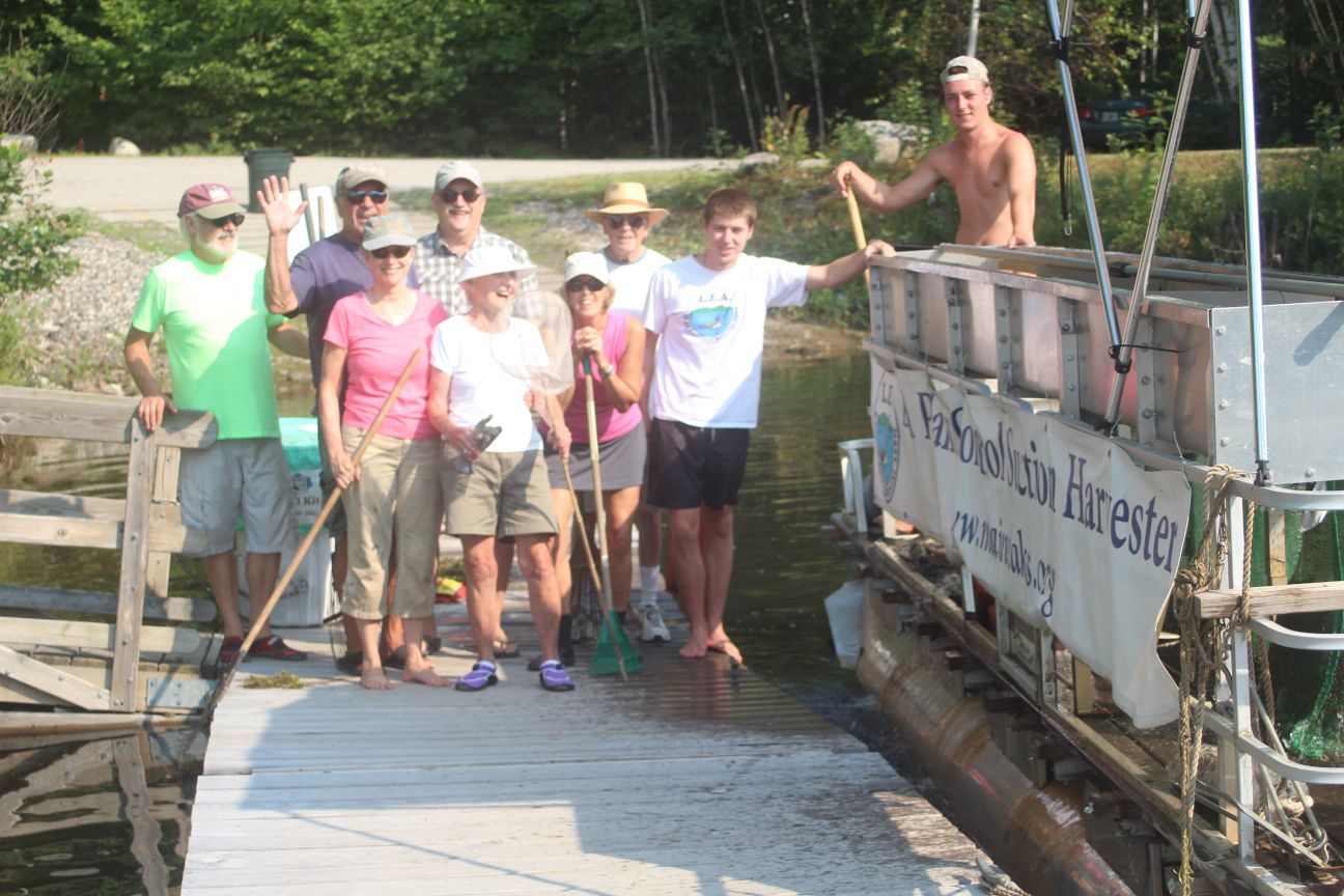 On Monday, the association sent a milfoil control team and a Diver Assisted Suction Harvester, which is a boat featuring a vacuum pump, to remove milfoil from Quail Cove, Long Beach Marina, and other areas along the shore of Frye Island. According to Frye Island Town Manager Gary Donohue, many volunteers assisted in the effort, picking up stray milfoil pieces while walking along the shore or paddling in kayaks.
