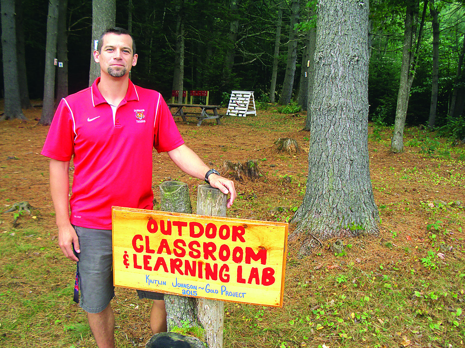 Nick Lyons, physical education and wellness teacher at Durham Community School, stands outside the school’s Outdoor Classroom & Learning Lab, where he spends as much time as he can with students.Staff photo by Larry Grard