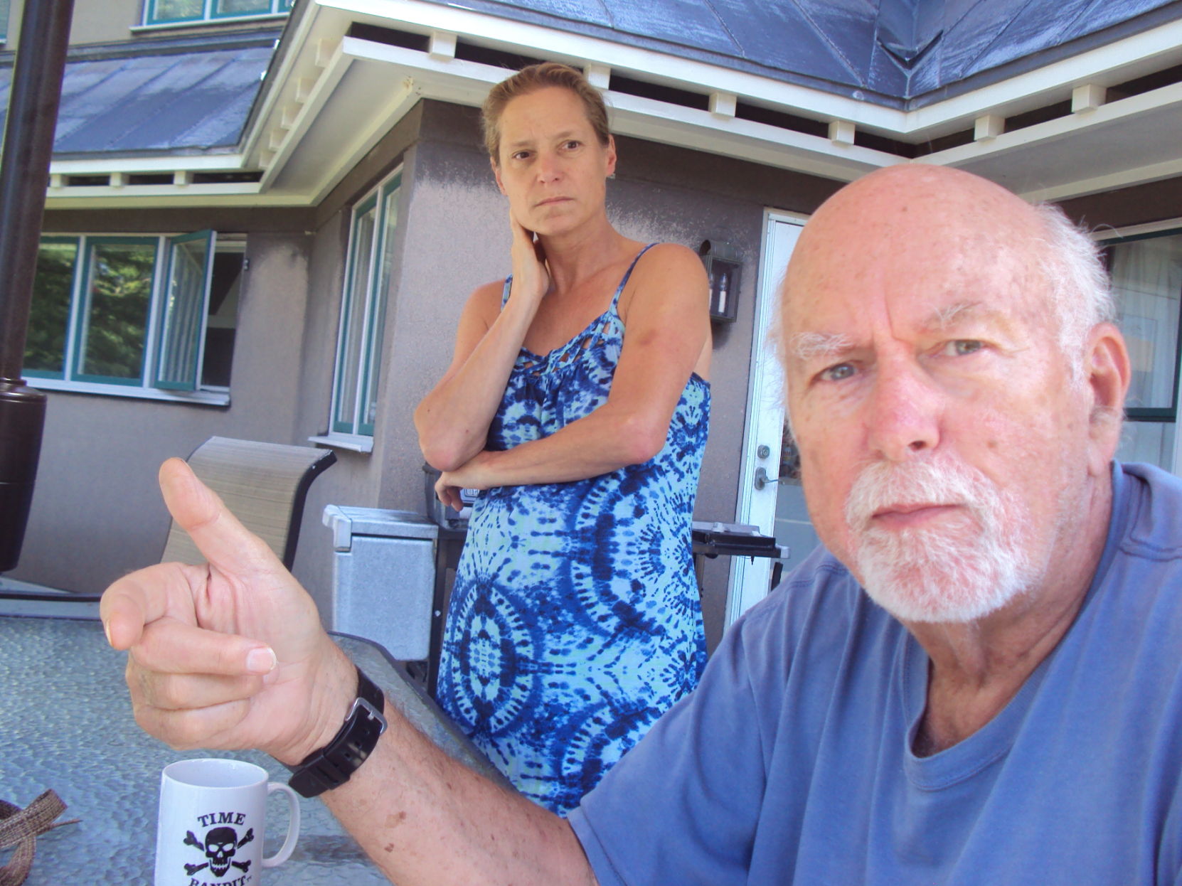 Bob and Denise Kinney talk about the brown tail moth infestation that struck their home and many others this year at Wolfe’s Neck in Freeport.Staff photos by Larry Grard
