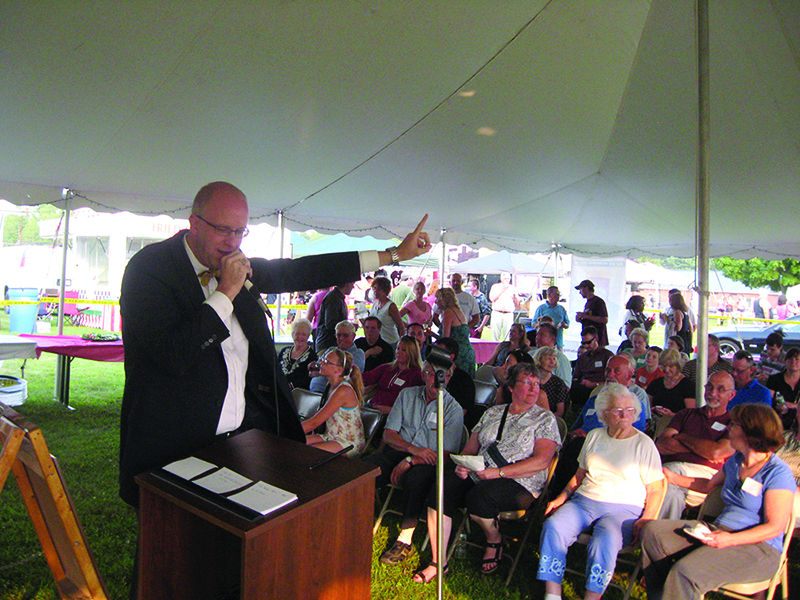 Duane Dreger serves as auctioneer at the 2014 Gorham Founders Festival. The auction this year will be at the festival reception honoring the Irish family, from 6-10 p.m. on Friday, Oct. 16, at Spire 29 on School Street. File photo