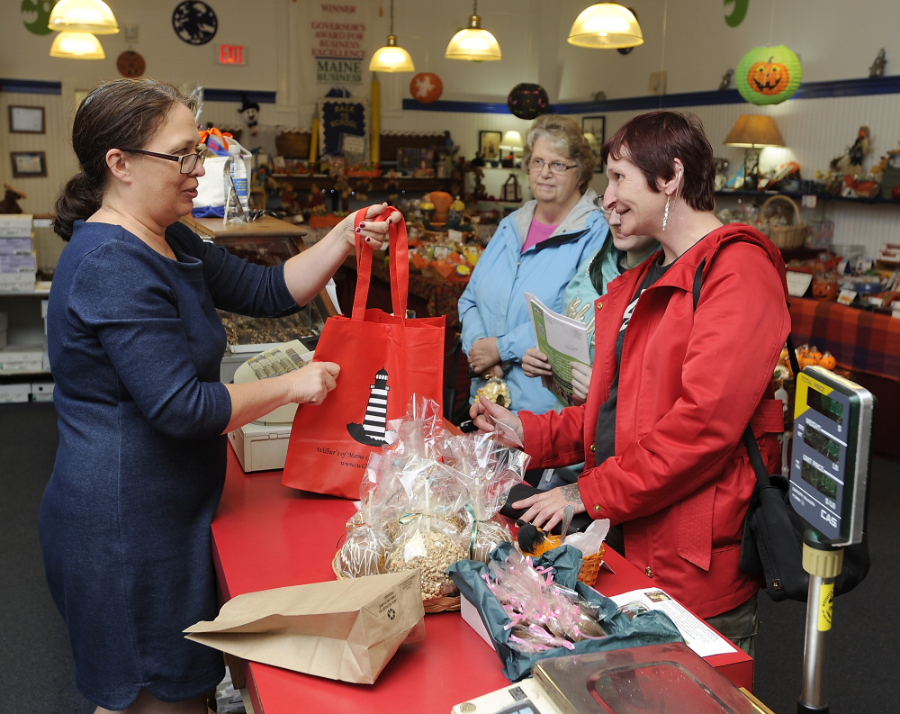 Freya Colella of Brunswick, who was shopping in Wilbur’s of Maine Chocolate Confections with her daughter Toni DuPrie, supports the intent of such policies because she is concerned about plastic pollution. But Colella, who confessed to frequently forgetting her reusable bags in her car trunk, said government shouldn’t be able to force these policies on consumers.