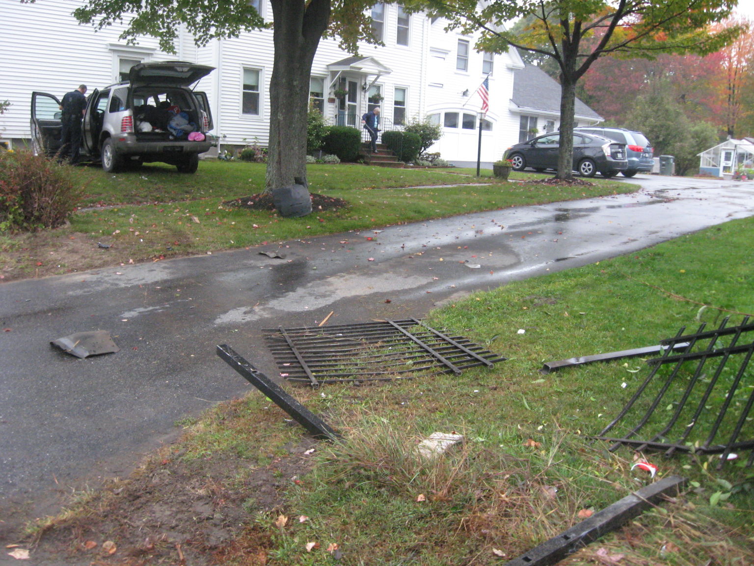 The vehicle appeared to have first flattened a utility pole and a section of Barton’s decorative iron fence.