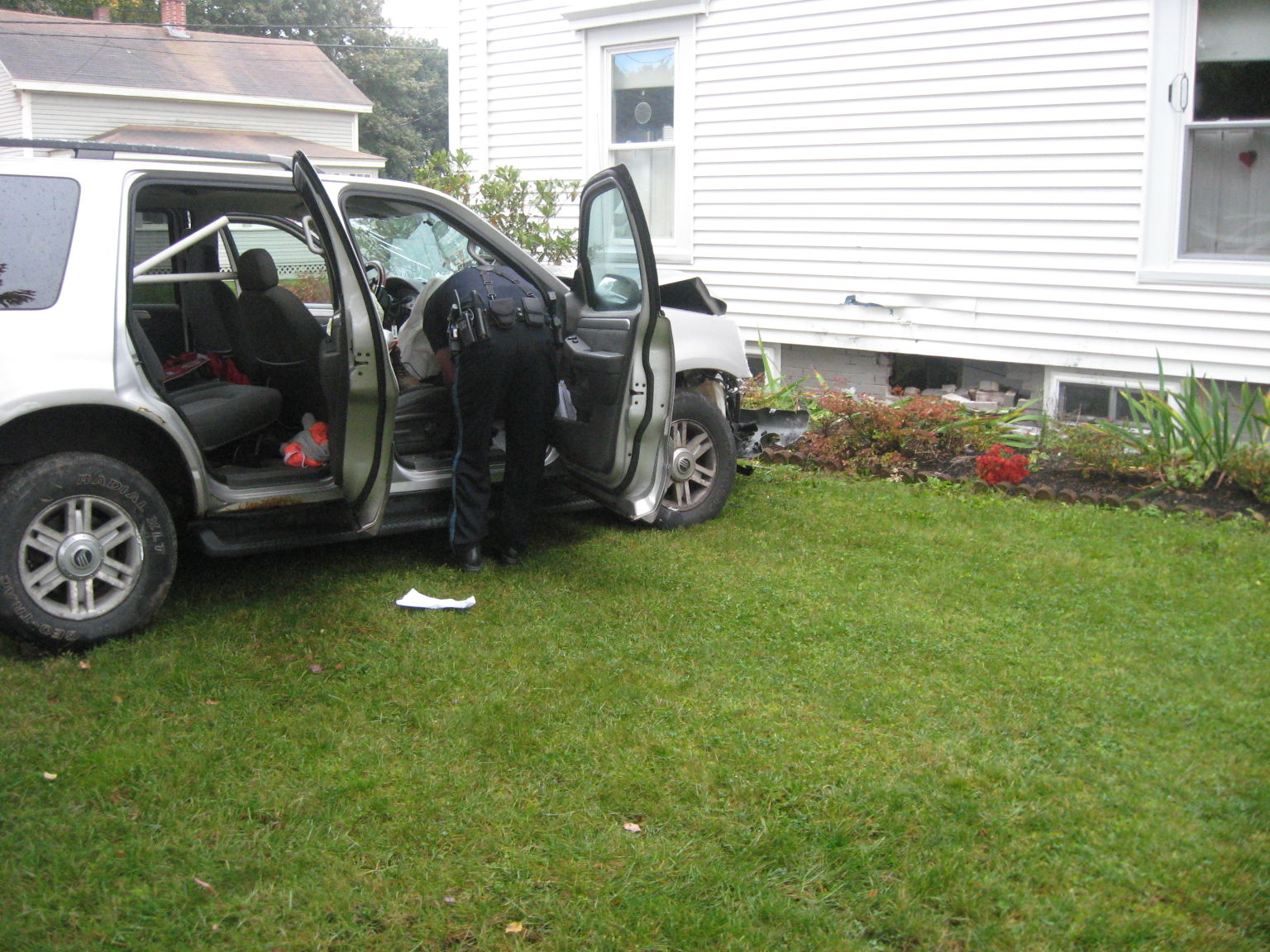 Police searched a vehicle after a driver apparently lost control of an SUV mid-afternoon on Tuesday in Westbrook and struck a house at 127 Brown St.
