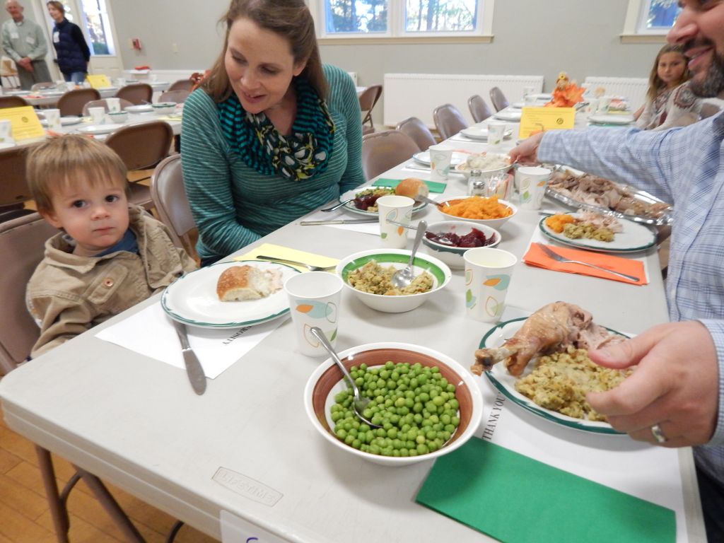 Aaron and Jennifer Blanchette with their son Judah at the Harvest Community Supper. Nearly 200 volunteers helped put on the meal to support the Falmouth Food Pantry, which is still accepting donations.