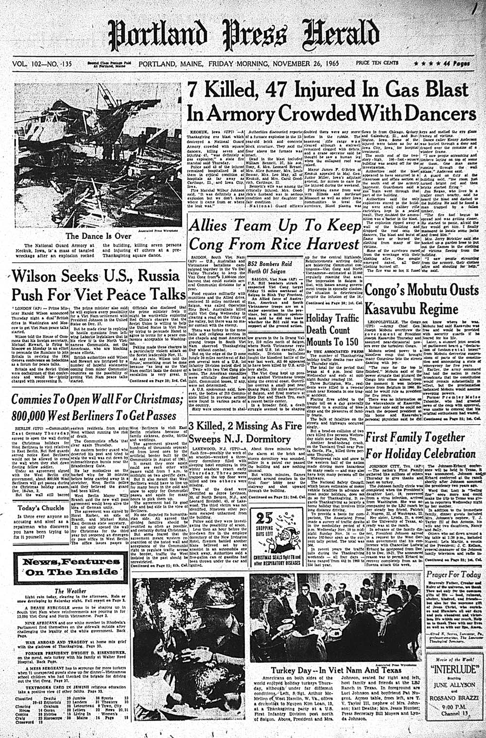 View the historic front page from the Portland Press Herald: Commies to open Wall for Christmas; 800,000 West Berliners to get passes