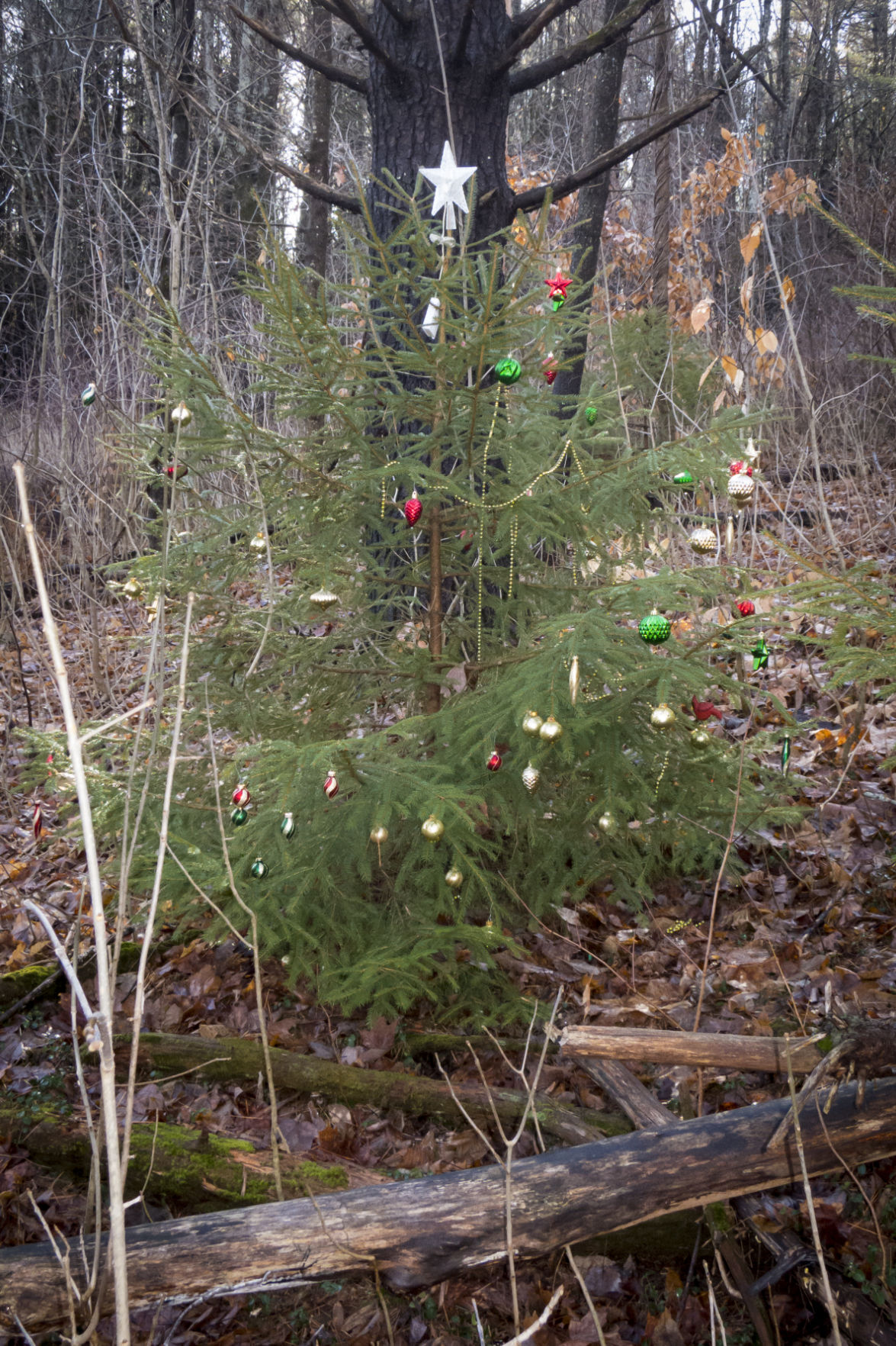 What I am about to relay to you is, by now, old news, but I couldn’t pass up the opportunity to share what I found in Pondicherry Park just a few days before Christmas. As I was walking on the Pondicherry Loop Trail, not too far from the Dunning Memorial Bridge, a tinkling sound got my attention. I looked around to see what it was, and my eye caught a glimpse of something magical and unexpected: a decorated tree in the woods. Someone had lovingly adorned a most adorable tree with a white star, beaded garlands and red, green and gold ornaments. It might have been the squirrels, but I am guessing it was a human Bridgton resident, looking to spread some delight to those who frequent the park. Whoever you are, I hope you read this and know that you brought absolute joy to me that day. At last check, the tree was still decorated, so it might not be too late to see it before the decorations are taken down.