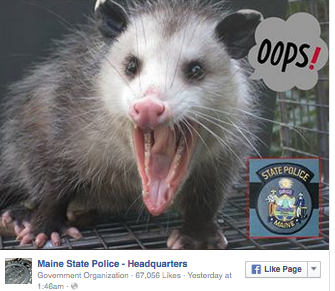 AUGUSTA – In tongue-in-cheek fashion, Maine State Police are talking about a trooper’s encounter with an opossum described as a “nasty, fire breathing type” of beast.