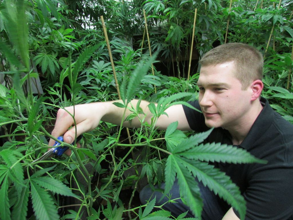Grower Sean Wyatt trims marijuana plants at his Yarmouth primary caregiver facility in 2014.