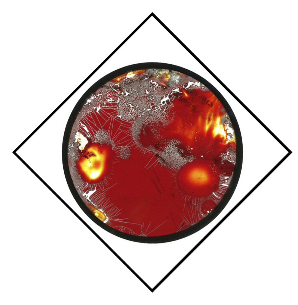 Caswell’s work pulls together on the basis of traces. The objects show up best with an eye to evidence photos. We become detectives, not hunting for a culprit per se, but we are asked to consider what we can see, learn and understand in the images before us. Open-minded observation pulls together the experiments of collodion process crystals as well as the decay circles in which Caswell asks us to notice nature’s propensity for fractal forms. It also pulls in the tamped-grass deer beds, the radar systems, a rocket camera and even the four before-and-after images in which a rabbit is spotted by a timer-mechanized camera system. But, contrary to the title, these are passive observational systems even if they are intentionally sought out by the artist. Decay may be considered aggressive, but it lacks the intentional agency we associate with the title term “aggressive.”