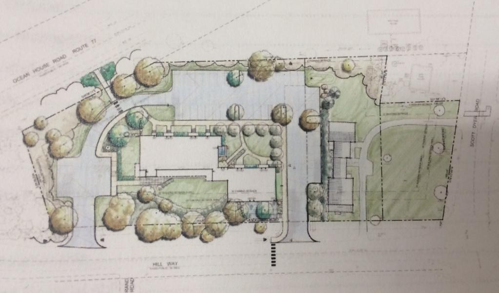 A rendering of the view from Ocean House Road of a building proposed for 12 Hill Way.