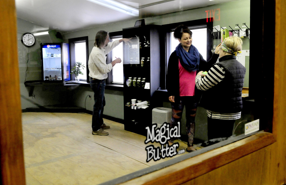 Bangor doesn’t restrict where medical marijuana businesses can be located. Just steps away from City Hall in a State Street storefront is Grass Roots of Maine and Mainely Medical Marijuana, a caregiver business and smoking paraphernalia shop.