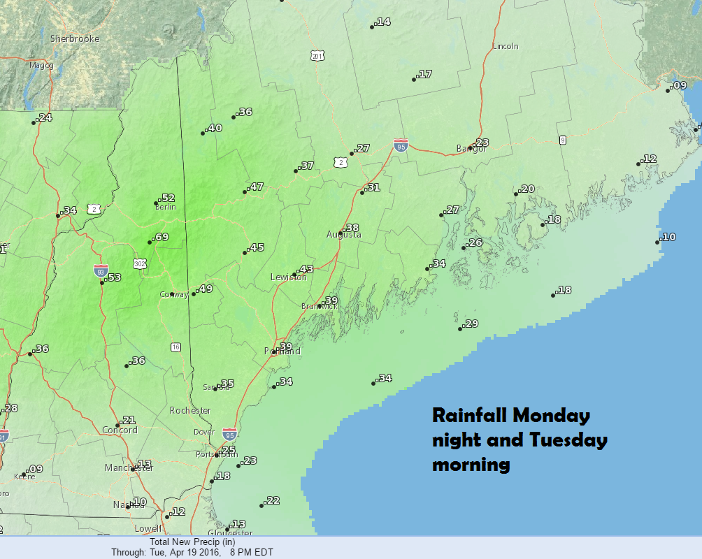 While we do have showers in the forecast tonight, Patriot’s Day 2016, and the running of the Boston Marathon to our south feature great weather. There have been all sorts of weather on this holiday in the past, from snow and rain to wind and cold and even some early season heat. Since Patriot’s Day floats a bit it’s harder to give all the weather that’s occurred on the holiday, but on April 18, 1992, there was 2 inches of snow in Portland! Mid-April can bring almost any type of weather you can think of to southern and central Maine.