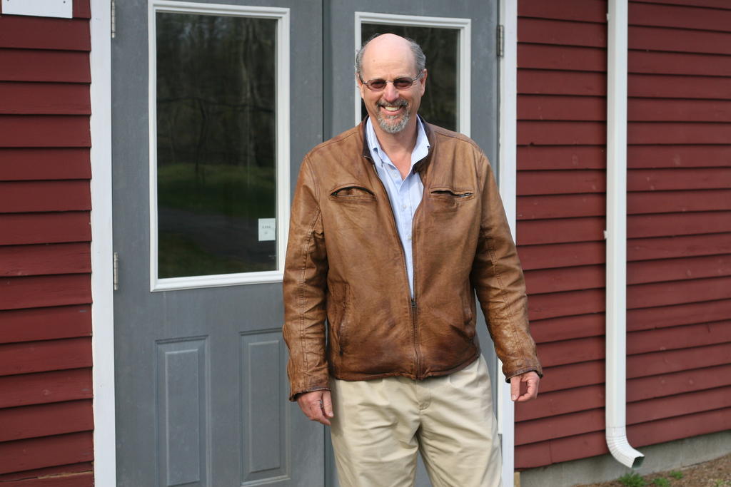Michael Lyons, co-owner of Rogue Industries, stands in front of the workshop at his new office in Standish. Lyons is expanding his wallet company and increasing its capacity to manufacture a front-pocket wallet.
