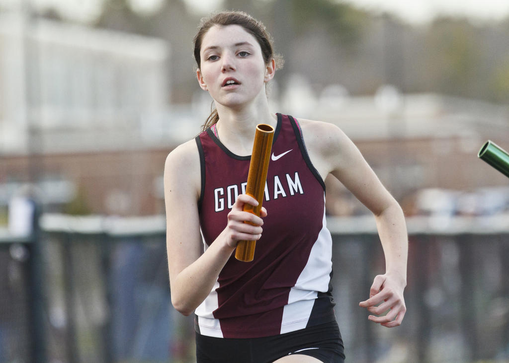 Sarah Baxter competes for Gorham in the 4×800 at last Friday’s Scarborough Relays.