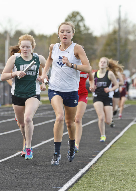 Sammy Thompson competes in the 4×800 Relay for Westbrook on Friday.