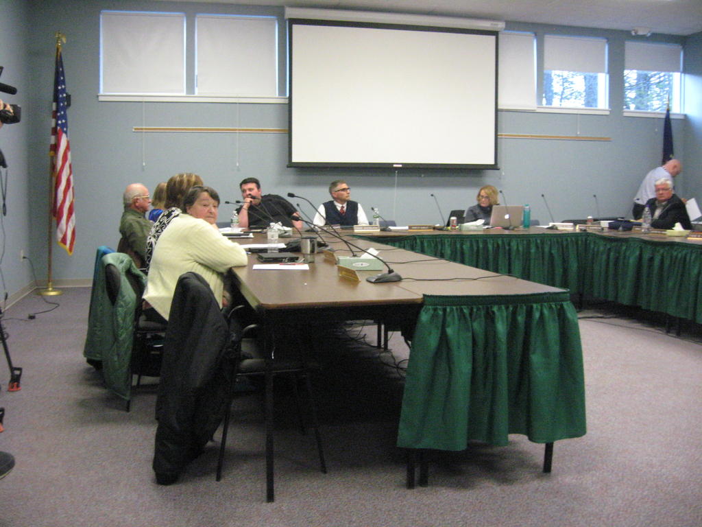 SAD 6 Superintendent Frank Sherburne wearing white shirt, red tie and a vest, appears Monday at the school board meeting before the board announced his resignation.