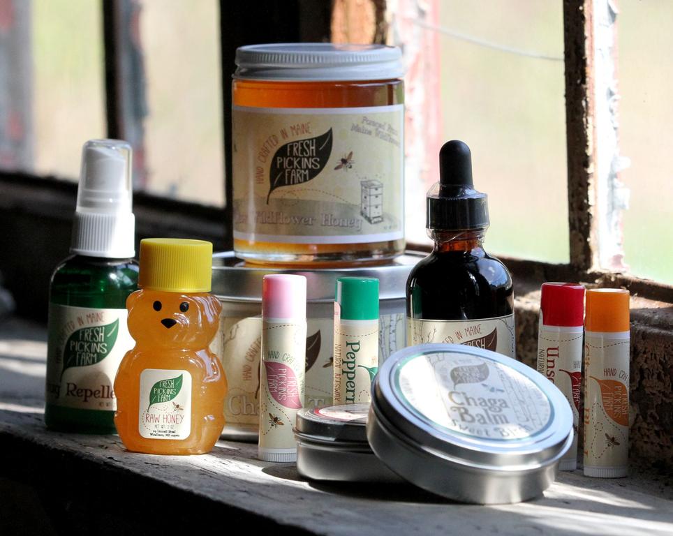 Fresh Pickins has grown exponentially. Its products, ranging from natural sunscreen, to chaga tincture, to lavender-infused honey, are sold at Lois’ Natural Foods in Portland and Scarborough, The Portland Food Co-Op, and more than half a dozen farmers markets in southern Maine. With the move to Ram Island Farm, Marion and Vicki will be able to manufacture even more products.
