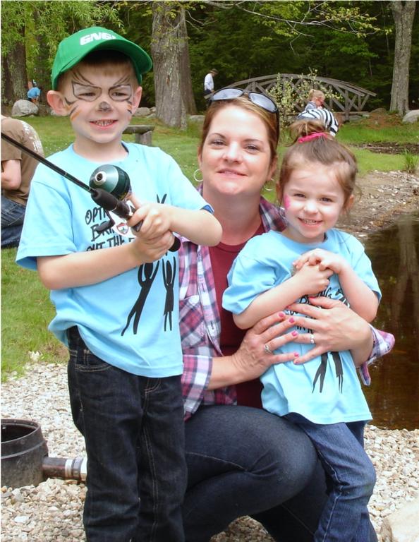 Katie Shelley of Gray and her children Nathan, 5, and Cara, 3, enjoy themselves at the Pineland Farms pond in New Gloucester during the May 22 Learn to Fish Day. This event was sponsored by the Gray-New Gloucester Optimist Club.