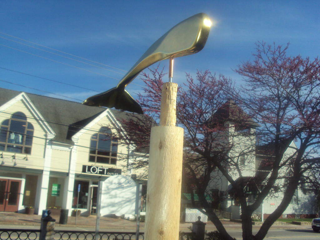 A sculpture of a whale, by John Bowdren of Pownal, graces the garden of the Freeport Historical Society for its new exhibit, “Freeport Artists of the Past.” Bowdren made the carving from mahogany, on a cedar post. It turns in the wind and catches the light. Bowdren and Jordan Smith, also from Pownal, have several other pieces on the grounds of the Harrington House at 45 Main St.