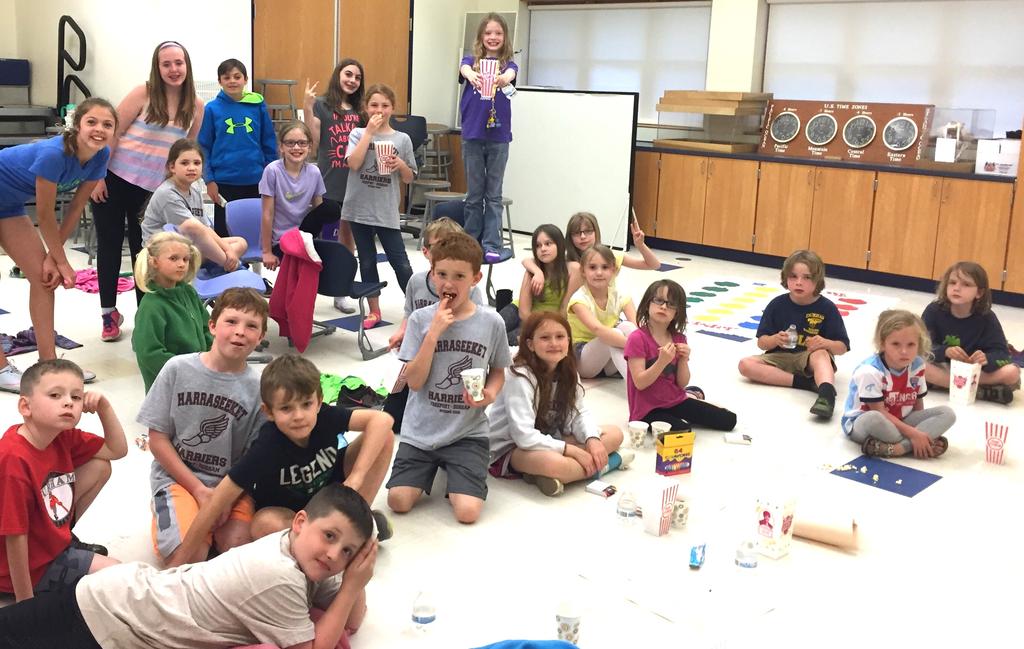 Members of Scouts Troop of Durham, back, have fun with other kids during the RSU 5 budget meeting last Wednesday in a Durham Community School classroom. The Scouts were doing some babysitting for the little ones while their parents attended the meeting in the gym. In back, from left, are Scouts Aynslie Decker, Hannah Moore, Paige Gelhar and an eighth-grade boy, Eric Decker.