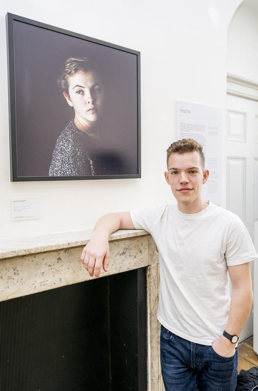 Sam Delaware stands next to his photograph of his sister Sarah, which won him a Sony Youth Photographer of the Year award.
