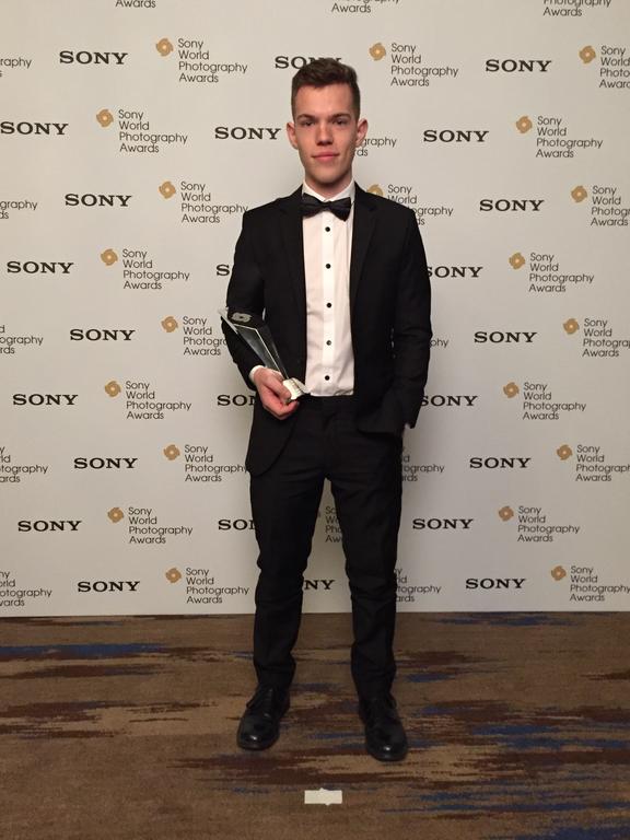 Sam Delaware of Durham receives a Youth Photographer of the Year award during a ceremony in London.