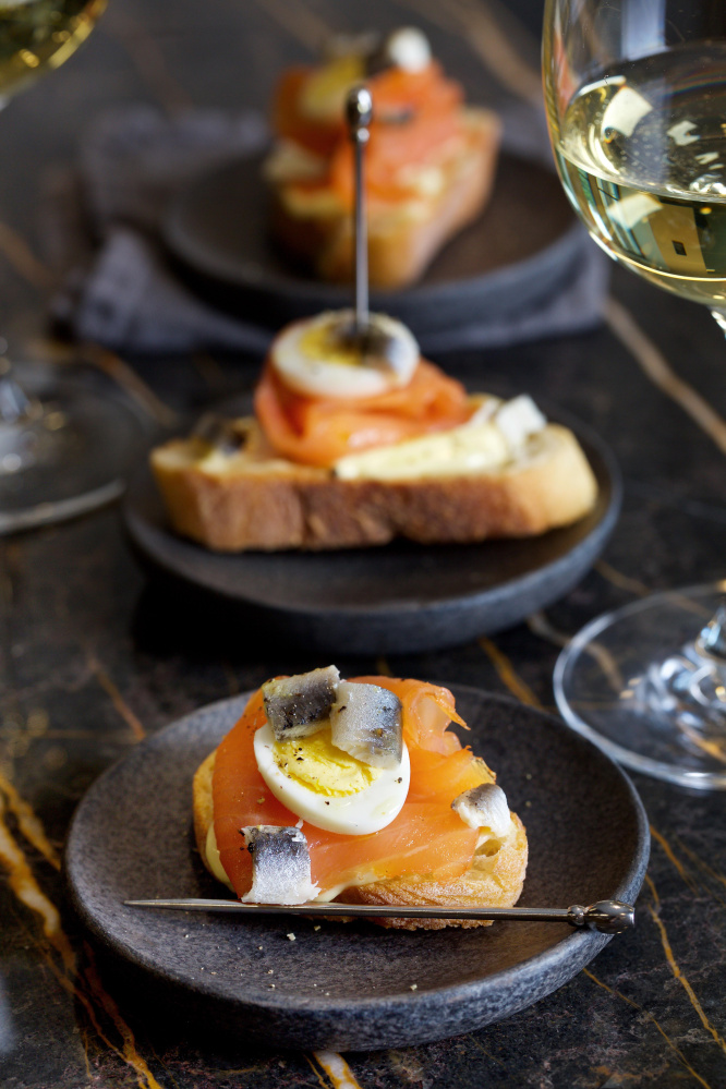 This was inspired by pintxos in San Sebastian. Quail eggs always delight; the steaming technique called for here keeps them from being overcooked and makes them easy to peel.