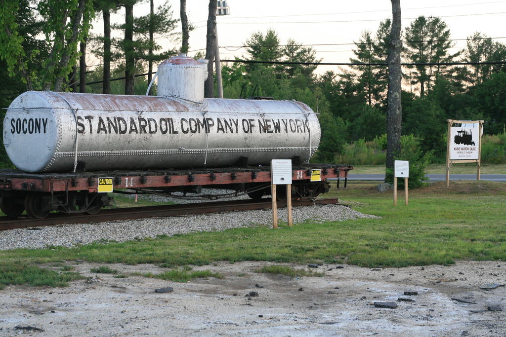 The Standard Oil car is one of two train cars off of Route 100 in Gray, where the Maine Narrow Gauge Railroad hopes to operate the historic two-foot railcars by 2018. The cars are a sign the full operation is “coming soon to a community near you,” said Donnell Carroll, executive director of the railroad company.