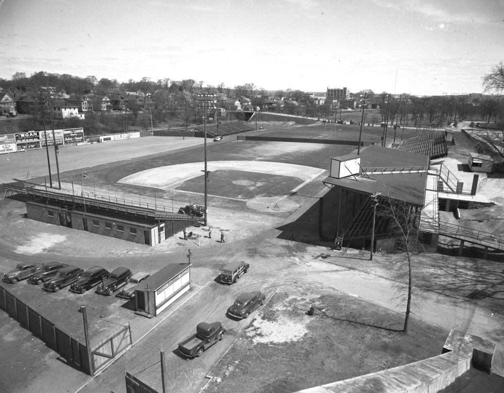 This Press Herald photograph from the spring of 1948 shows Portland Stadium, today known as Fitzpatrick Stadium, set up as a baseball field for the Portland Pilots’ opening day.