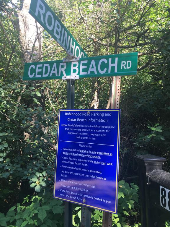 A sign on Cedar Beach Road explains public access rules. Cedar Beach/Cedar Island supporters hope to educate the public on proper beach ettiquette.
