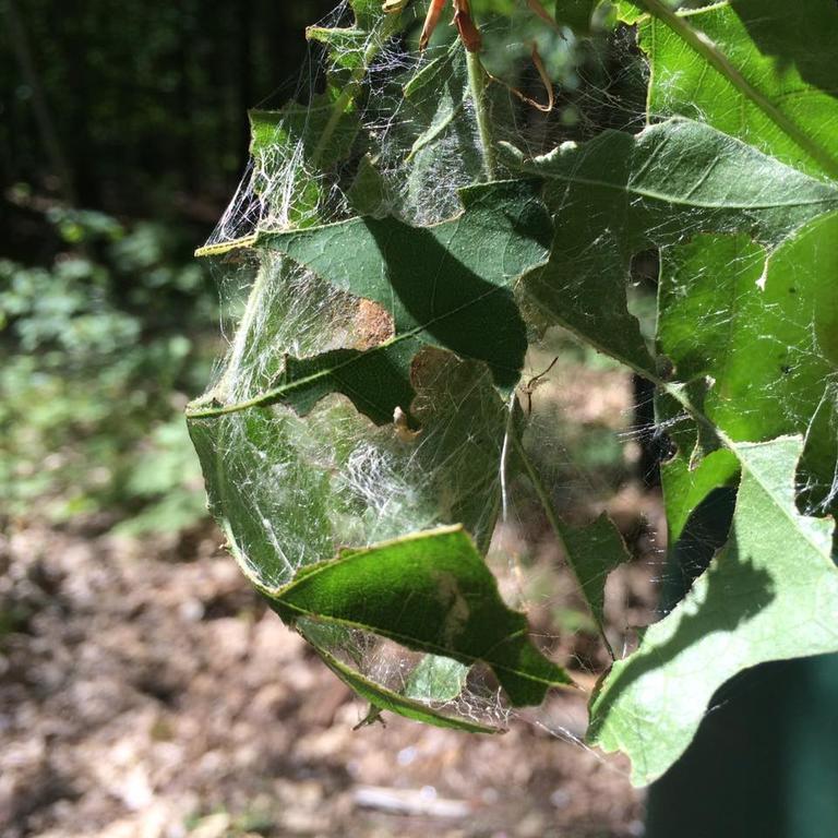 Teerling advises people to monitor trees on their property for webs in early winter, when the leaves have fallen. Oak trees are prime targets for the moths.