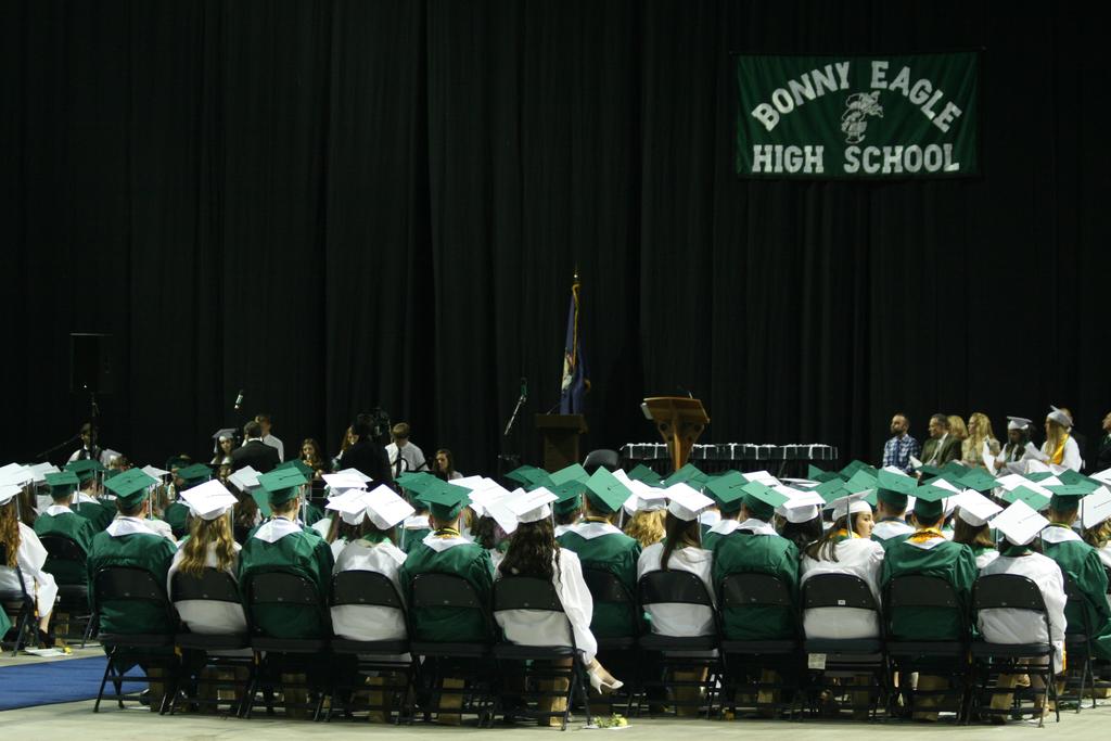 Bonny Eagle students wait for their diplomas during graduation at the Cross Insurance Arena in June.