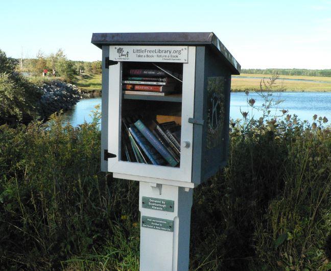 A new Little Free Library, which was erected through a partnership between the Scarborough Public Library and the Scarborough Kiwanis Club, stands adjacent to the trail parking lot off Pine Point Road.
