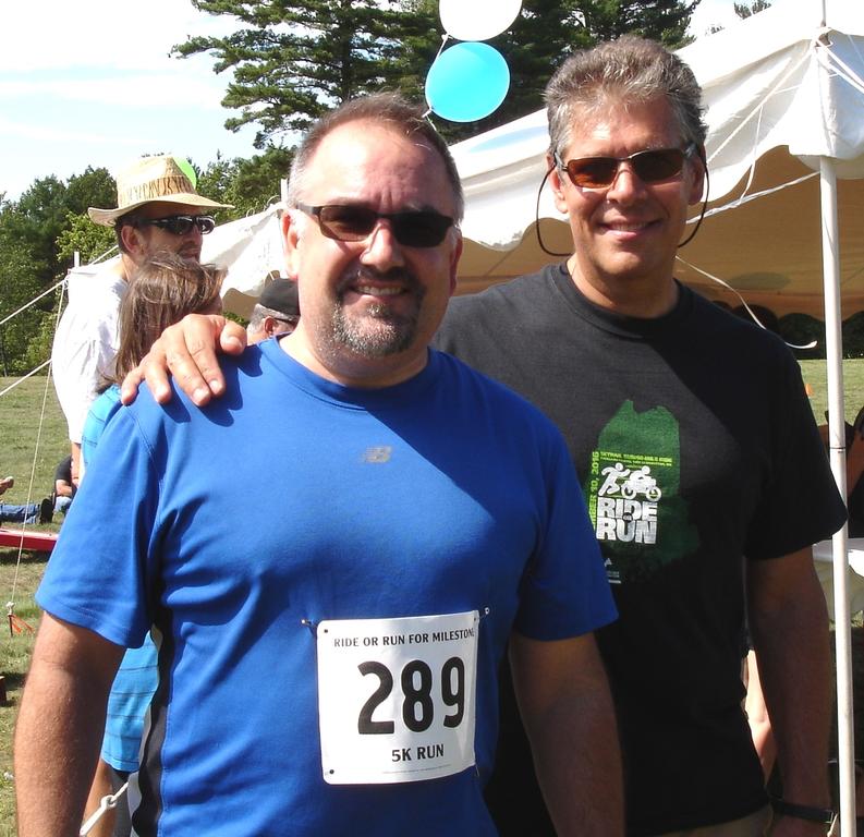 Paul Leblond, left, a videographer for the Milestone Foundation, ran the 5K fundraiser associated with the Ride or Run for Milestone event on Sept. 10. Here, he’s accompanied by Bob Fowler, executive director of the foundation, a nonprofit organization dedicated to supporting people facing addiction and homelessness in Maine. The successful fundraiser wrapped up with a barbecue at Pineland Farms.