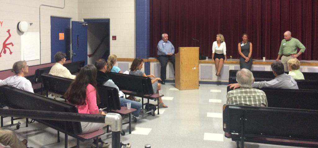 The second annual citizens rountable was held in Cape Elizabeth Sept. 19, and was led in part by Town Manager Mike McGovern, left, and Councilors Molly MacAuslan, Patty Grennon and Jamie Garvin.