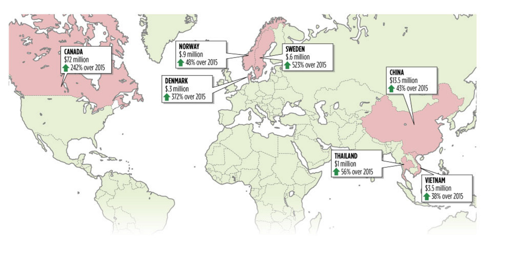 State trade officials credit this year’s 113 percent jump in midyear exports to huge growth in Canadian sales, which is basically Maine helping to fill its neighbor’s global orders, and a 43 percent growth in exports to China.