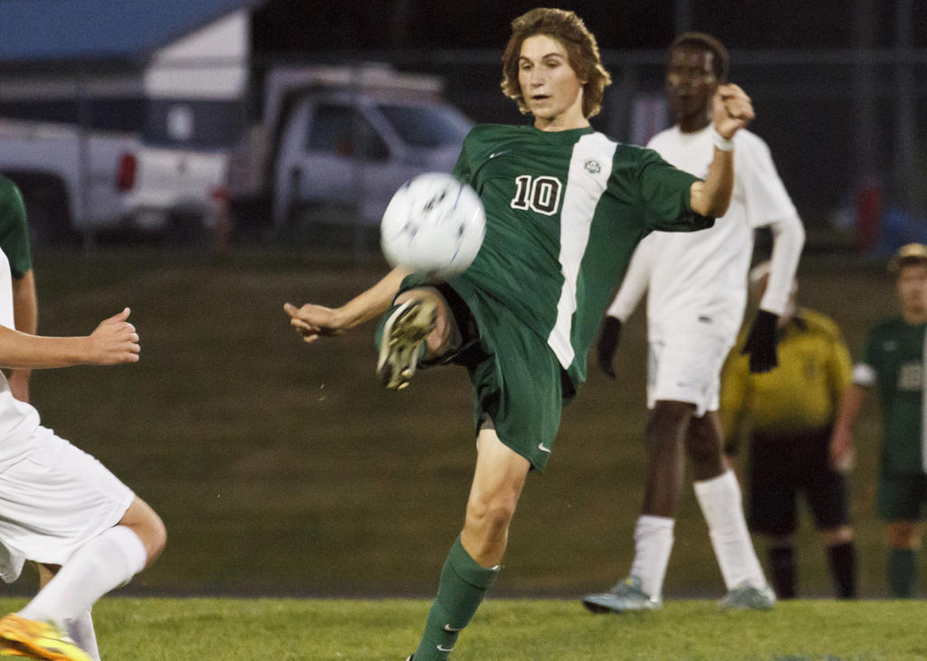 Westbrook keeper Jacob Brackett surveys the field, looking to punch the ball forward for his teammates.