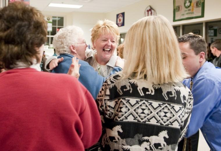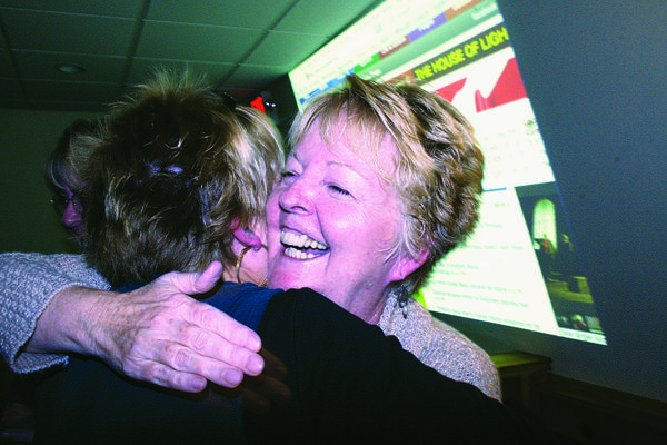 Colleen Hilton celebrates with supporters following her win over Bruce Chuluda in 2009 to become the city’s first female mayor.