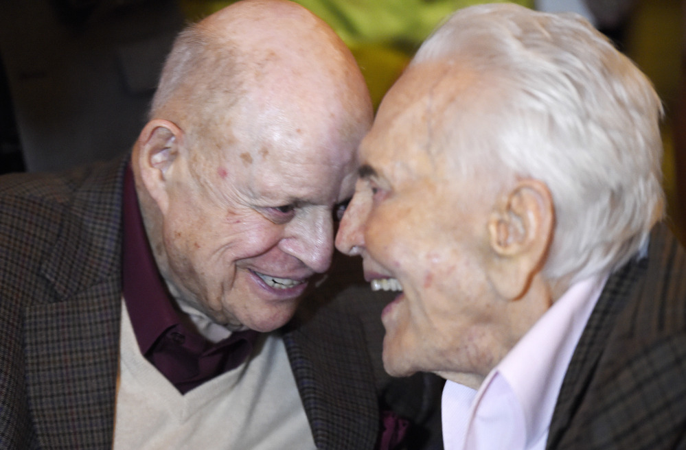 “I wonder who he was talking about? He said some nice things about someone I don’t know,” Kirk Douglas said, joking that Michael Douglas was chosen to organize the proceedings because “he has the most money.”