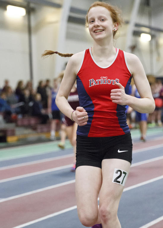 GORHAM—Seven boys squads and eight girls squads matched up for the early meet at USM’s Costello Sports Complex on Friday, Dec. 16. York emerged sparkling from the affair, taking first on the boys’ side and second (to Greely) on the girls’. Big names figured prominently into the afternoon: Yarmouth’s Luke Laverdiere, for instance, continued to torch the distance runs, and the G-NG girls shotput outfit, led by event-winner Emma MacCallum, looked as powerful as ever.