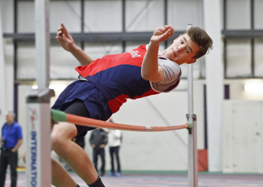 Patriot Jacob MacCallum clears the bar in the Junior Division High Jump.